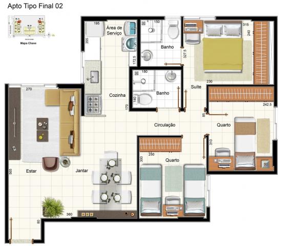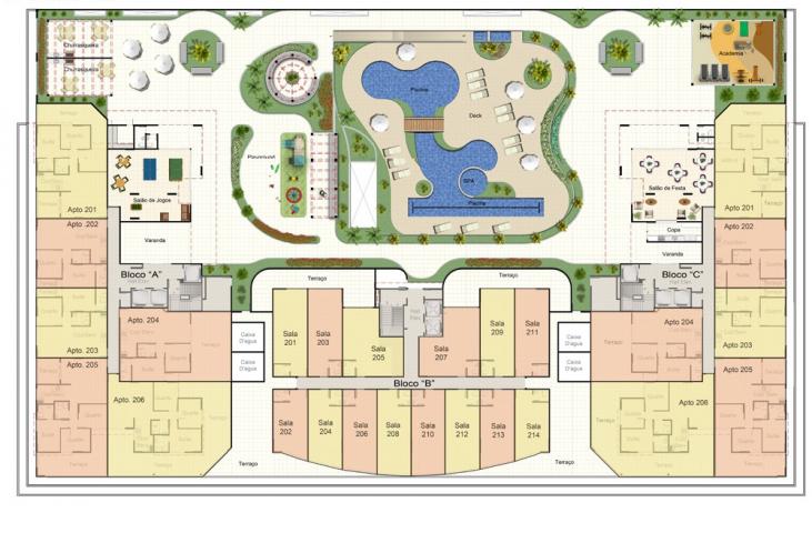 Terreno:4mil m²-Blcos:3-Ljs:116-Ljs:25,20m²a79,01m².Sls Com.:84?TamLjs:27m²a67,12 m².Qtd Apts:244-Elevadores:7-118apartamentos de 2quartos sendo 1suíte: 54,68 a 67,12 m²-118apartamentos de 3quartos sendo 1suíte:65,98a67,12 m²-8Coberturas Lineares:120a124 m²-Tipo de pavimentos:1º e 2º Subsolos:199Garagens-Térreo:Lojas com pé direito duplo-1º Pavimento:Lojas pé direito duplo-2º Pavimento:Área de lazer-3ºao 17ºPavimentos ? Blocos A e C:Apartamentos-3º ao 8º Pavimentos ? Bloco B:Salas Comerciais