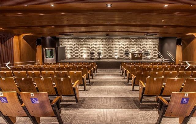 . Centro de convenção: 120 lugares, sala de áudio e vídeo, sala para tradução, foyer e depósito