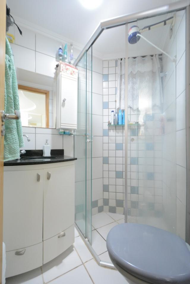 . Banheiro com box blindex, armários e ventilação natural